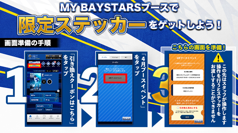 MY BAYSTARSのクーポン画面を見せて頂くと、ステッカーをゲットできます!