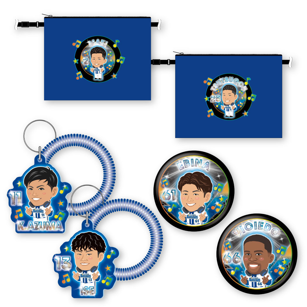 ラフな服装の選手たちの笑顔が映えるPVCポーチが新登場!背景のギンガムチェックは選手それぞれの好きな色を参考にしました♪