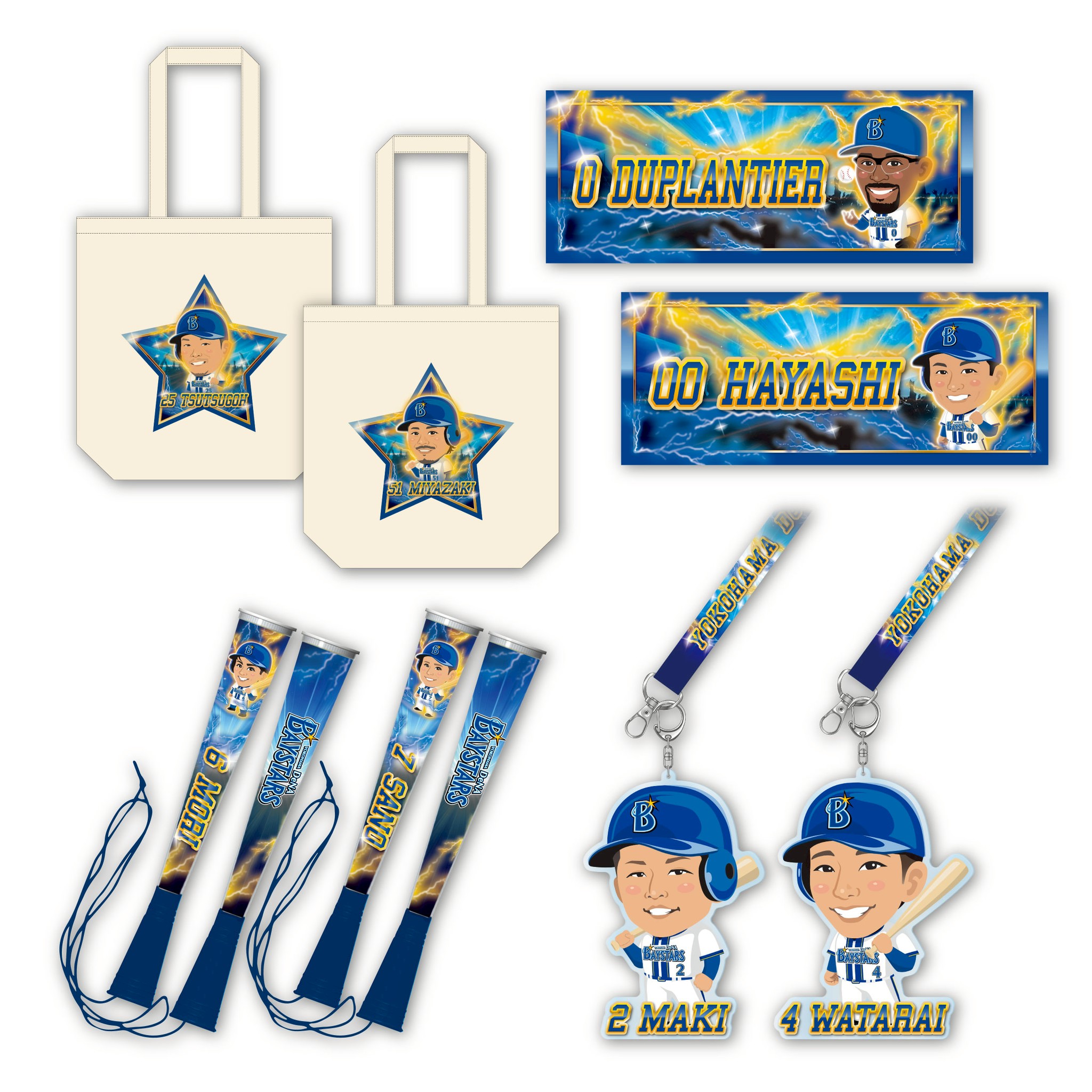 4月24日(金)~4月26日(日)の3日間限定で、大人気の選手イラストデザインのガラポンが登場!BIGアクキー付ネックストラップやトートバッグ、ツインメガホンにフェイスタオルをご用意しております。