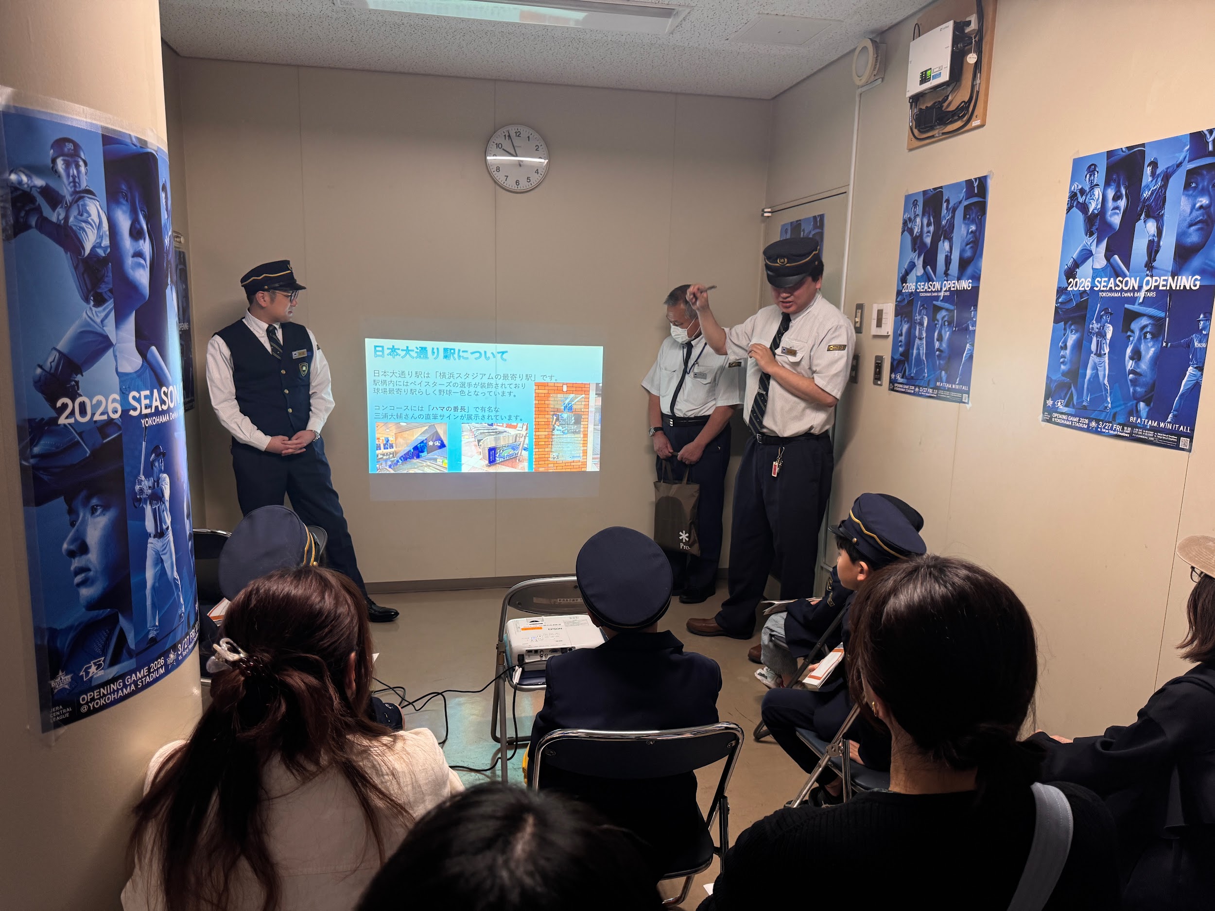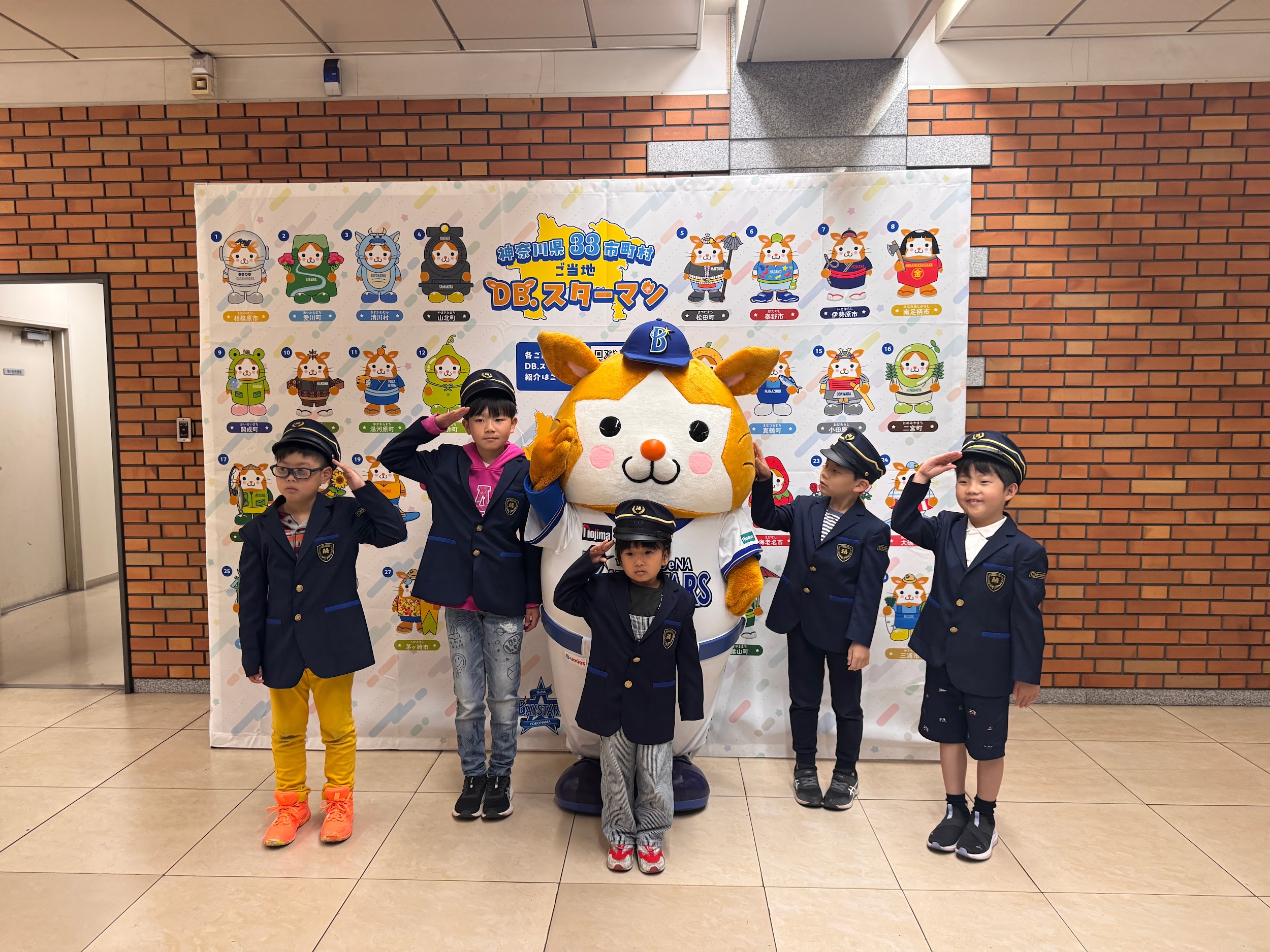 日本大通り駅を舞台に、鉄道の裏側を学ぶ社会科見学や、駅員さんの仕事を実際に体験するプログラムを実施しました。さらに、サプライズゲストとして球団マスコットのDB.スターマンも駆けつけ、会場は大いに盛り上がりました。