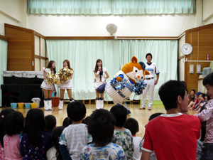 この日はあいにくの空模様で、室内での体験教室となりました。でも、野庭第二保育園のお友達は元気っ子!!外の雨を感じさせないくらいの明るい笑顔と笑い声の絶えない教室となり、楽しい時間を過ごせました♪野庭第二保育園のみなさん、今度は横浜スタジアムに遊びに来てね☆