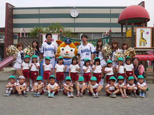 保育園幼稚園訪問は、小さな子どもたちにボール遊びを経験していただき、野球に興味を持ってもらおうと企画しております。今回は、平和幼稚園を訪問しました。