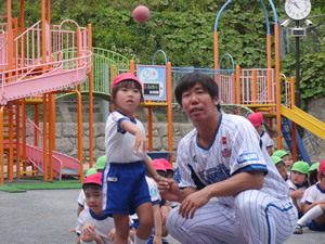 幼稚園・保育園訪問は、小さなこどもたちにボール遊びを経験していただき、野球に興味を持ってもらおうと企画しております。