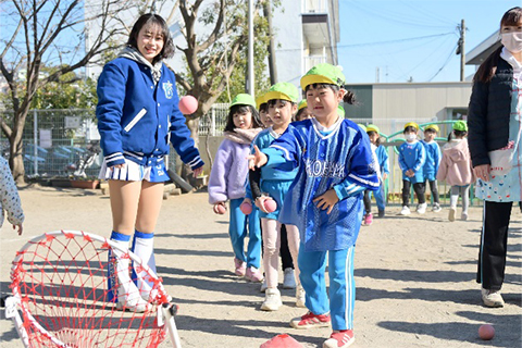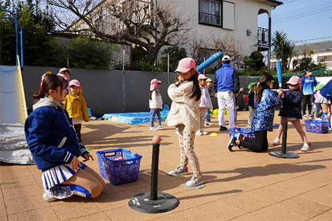ボールを「投げる!」体験ゲームで大盛り上がりの園児たちでした!