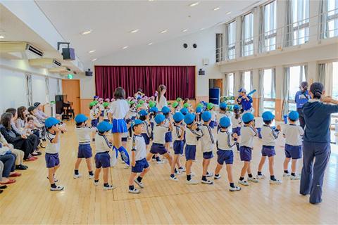 雨天のために屋内での活動となりましたが、園児たちは元気いっぱいにダンスや