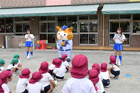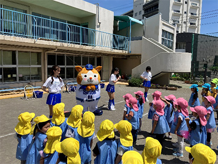 雨天のために屋内での活動となりましたが、DB.スターマンに会えて大喜びの園児たちでした!
