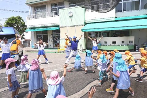 暑さに負けずに、DB.スターマンと一生懸命にダンスを踊る園児たちでした!