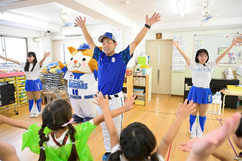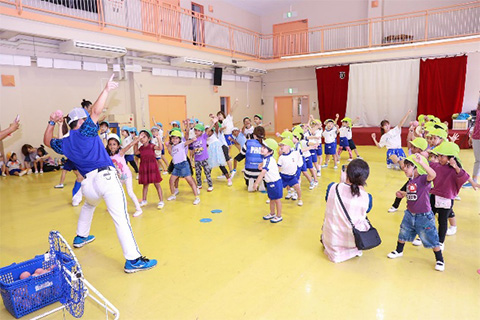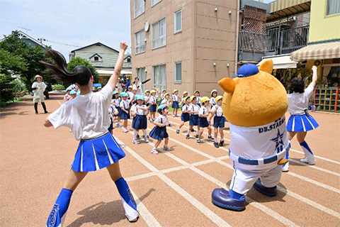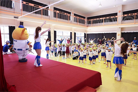 DB.スターマンと一緒にダンスやベイスターズ体操を楽しそうに行う園児たちでした!