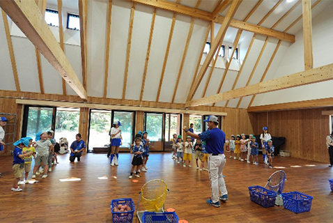 残暑厳しい中、屋内での活動ですがダンスや野球体験を楽しそうに行う園児たちでした!