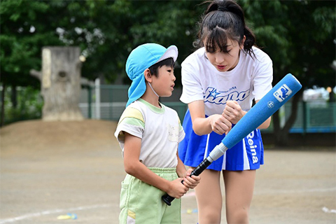 暑さに負けずに元気にダンスや野球体験を行っていました。