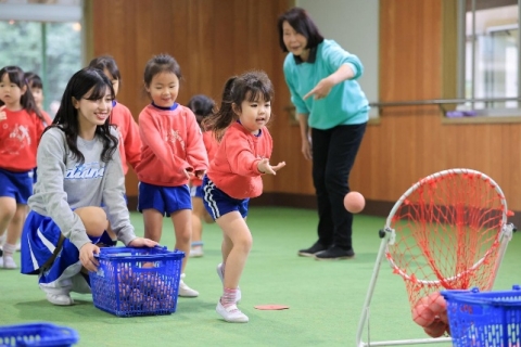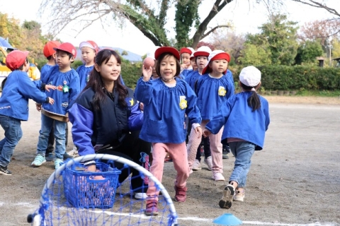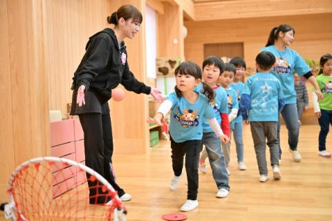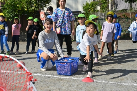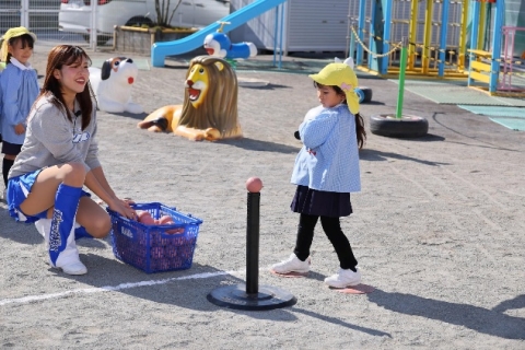 「投げる!」体験では、ゲームで大盛り上がりの園児たちでした!