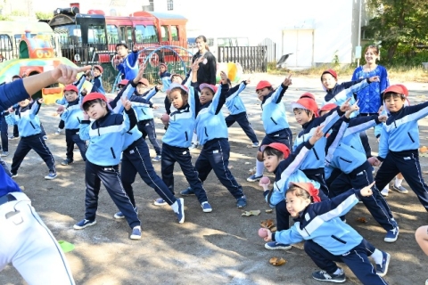 ベイスターズ体操を楽しそうに行う園児たちでした!