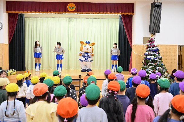 屋内での活動となりましたが、DB.スターマンに会えて大喜びの園児たちでした!