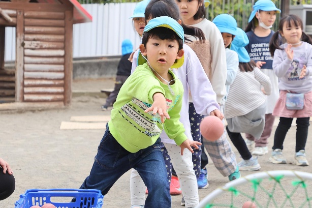 屋内ホールでの活動となりましたが、野球体験を一生懸命におこなう園児たちでした!