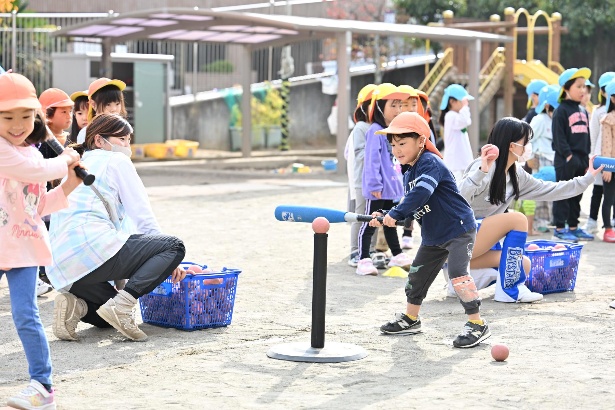 寒さに負けずに元気いっぱいに野球体験やダンスを行う園児たちでした!