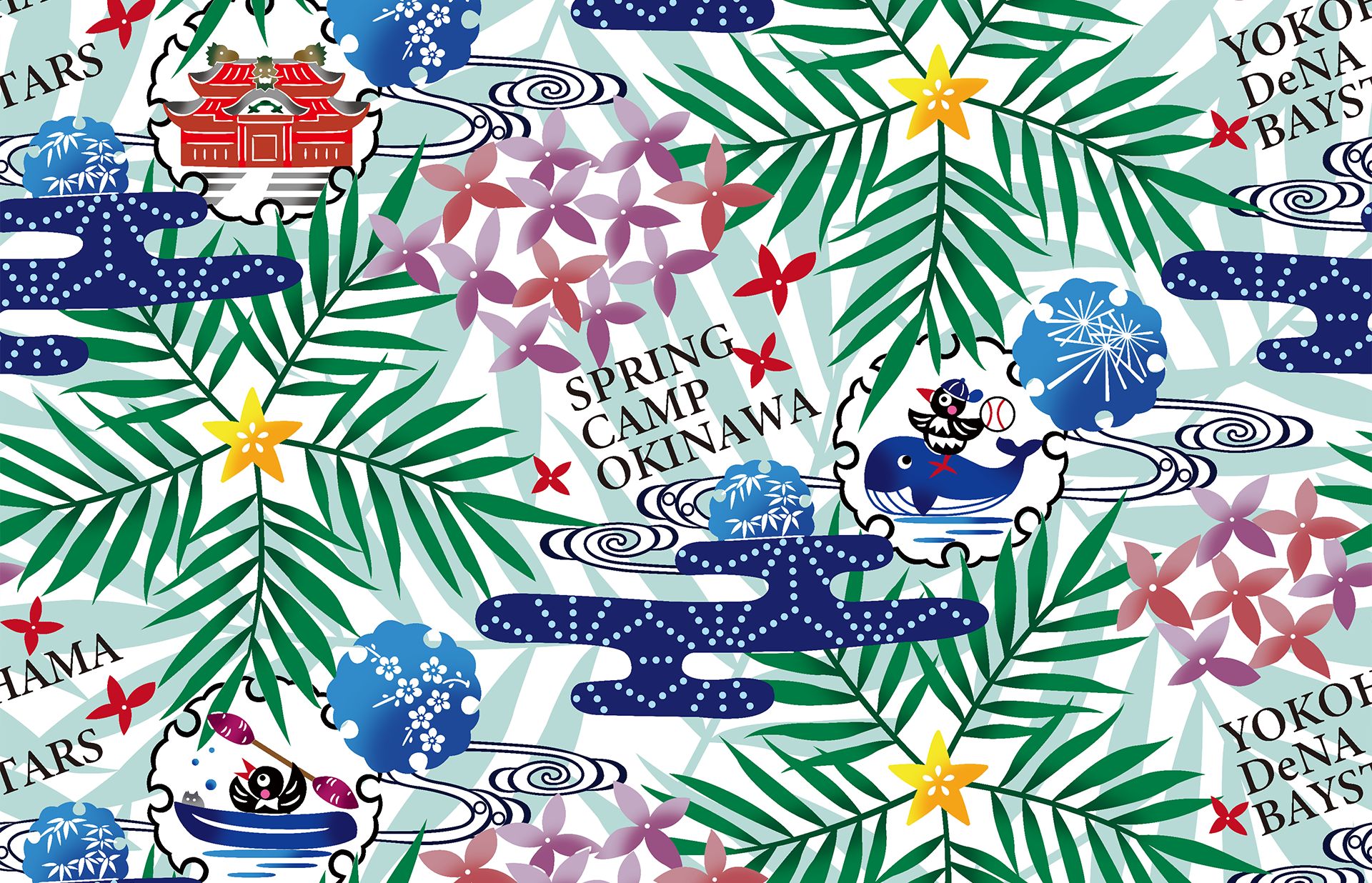 今年は永遠不変の常磐色をベースに採用し、今後も変わらないベイスターズと沖縄の深い絆を表現。「勝利」や「栄光」のシンボルとも呼ばれるヤシ、「喜び」や「情熱」の意を持ち、宜野湾市の花木でもあるサンダンカが咲く“沖縄ジャングル”におめでたい柄をぎゅっと盛り込みました!