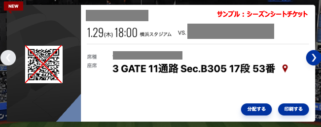 なお、シーズンシートは通常の電子チケットと二次元コードの周りの色が異なります。