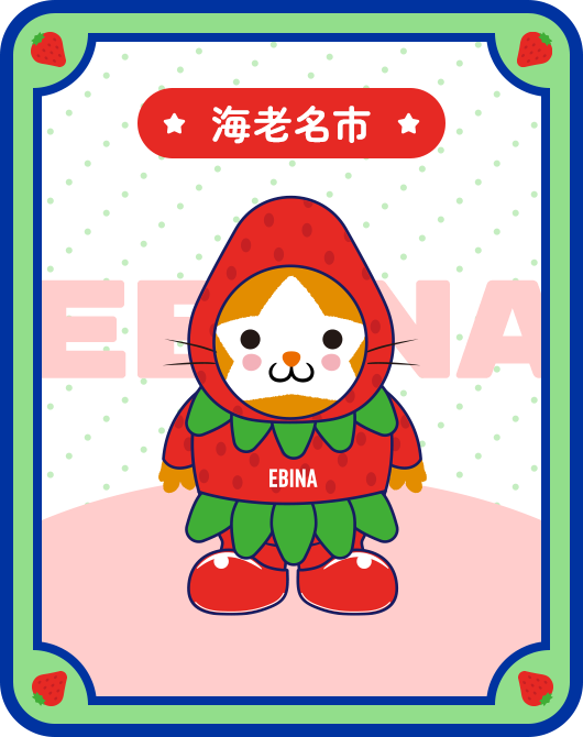 「いちご」がモチーフ。県内随一のいちごの産地として知られ、いちご農園が集まる通り「ストロベリーロード」があります。