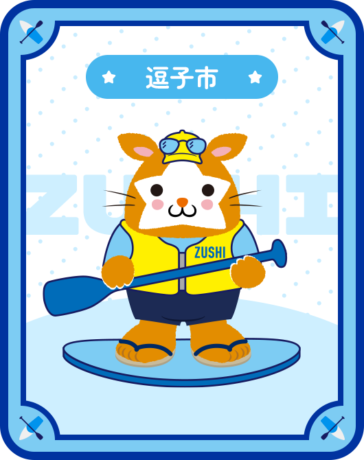 「サップ」がモチーフ。海が身近な環境の中で、マリンスポーツを日常的に楽しめるまちとして親しまれています。