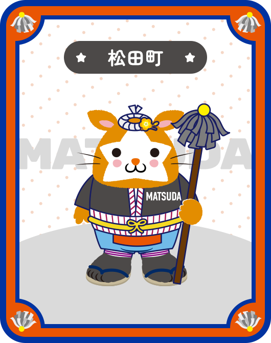 「大名行列」がモチーフ。明治初期から伝わる町の無形文化財「松田町大名行列」が毎年、町内のお祭りで披露されます。